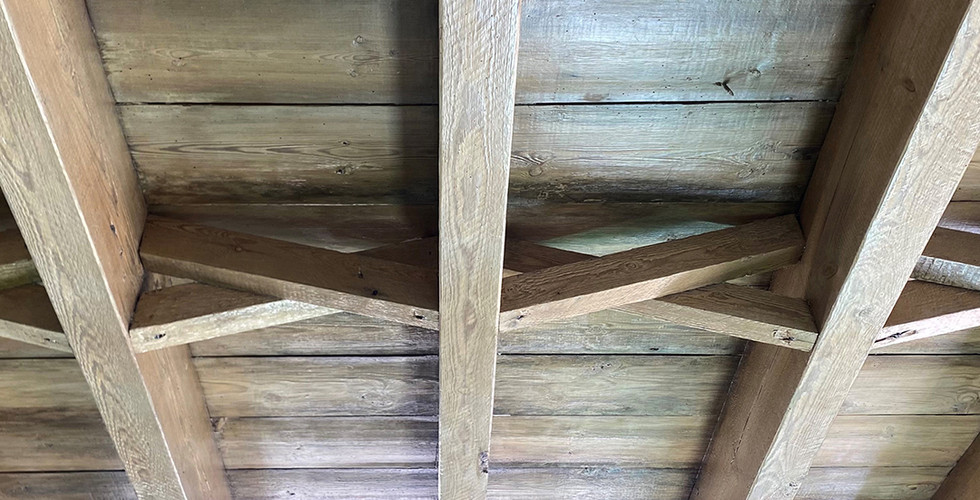 Historic internal studwork and quirky noggins between floor joists are being retained and expressed as part of our brilliant client’s pared back vision for the interior.